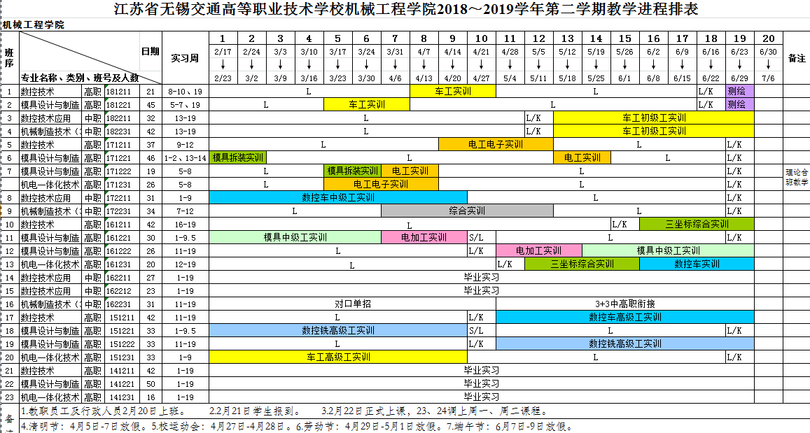 2019-2020学年第二学期机械工程学院 (锡澄校区)教室分布图