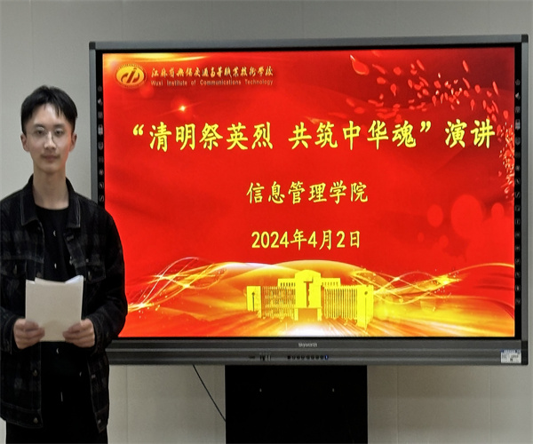 信息管理学院团总支开展“清明祭英烈,共铸中华魂”主题演讲活动。同学们慷慨激昂地讲述革命先烈的英勇故事,深刻体会新时代青年应该珍惜来之不易的生活,奋发图强,苦练技能,助力强国建设