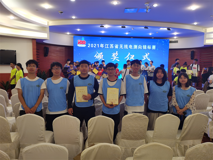 7月10日,2021江苏省无线电测向锦标赛在镇江市丹徒区世业洲润扬环龙大酒店隆重开幕,本次竞赛由江苏省体育局、江苏省教育厅、江苏省科协、共青团江苏省委、江苏省妇联联合主办,由丹徒区文体广电和旅游局、江苏无线电和定向运动协会承办。共有52支队伍700多人参加,比赛为期3天,学校选拔7名优秀队员参加比赛,我校学生社团无线电测向队蒋治国和张成老师担任教练。