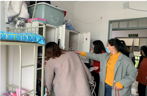 为进一步排查院学生宿舍的安全与卫生状况,提高同学们的安全意识。2021年3月31日下午,我院副院长江玉婷、学工办主任张婷老师协同全院班主任老师对学院宿舍进行大检查。