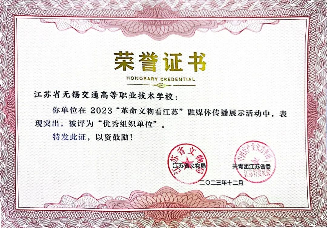 学校荣获“革命文物看江苏”融媒体传播展示活动优秀组织单位奖