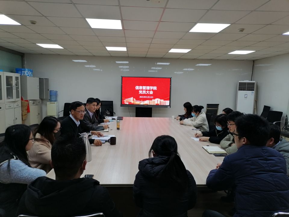 2021年1月13日下午,信息管理学院党总支在学院三楼会议室召开党员大会,副校长邢勇及学院全体党员参加了会议,会议由学院院长郑智飞同志主持。