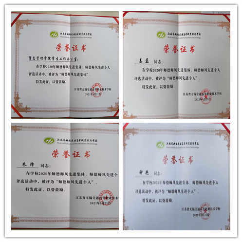 124日,学校在大礼堂召开2020年度总结表彰大会。学校副校长邢勇宣读了《关于表彰学校2020年师德师风先进集体、师德师风先进个人的决定》。信息管理学院学工办获“师德师风先进集体”荣誉称号,姜磊、钟艳、朱沛三位老师获“师德师风先进个人”荣誉称号。