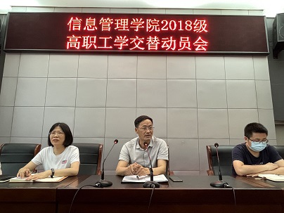 为进一步做好2018级高职学生工学交替工作,引导学生做好各项准备工作,信息管理学院于2022年6月1日中午在学术报告厅召开了工学交替动员大会。信息管理学院院长郑智飞老师、副院长蒋红梅老师,学院综合办、学院教研室主任参加动员大会。