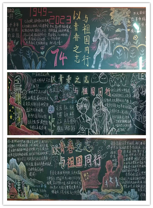 信息管理学院组织各班级绘制“以青春之志,与祖国同行”主题黑板报