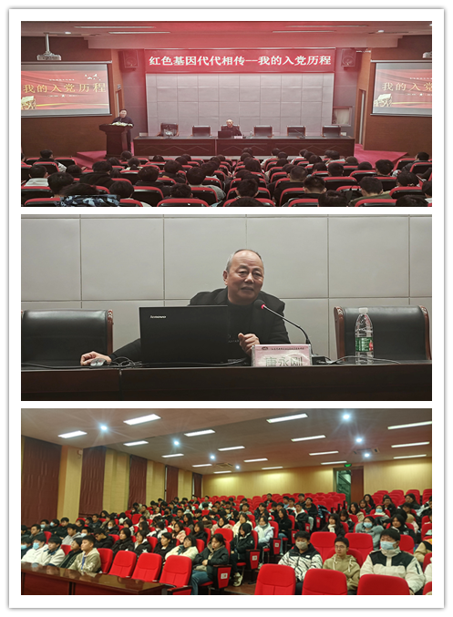 1215日下午一点半,学校工会组织退休党员唐永刚教授在学校学术报告厅为信息管理学院团学干部上了一堂以“红色基因代代相传——我的入党历程”为主题的党课。党课由学院党总支青年委员朱沛老师主持,八十余位团学干部参加。