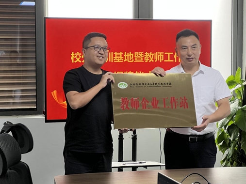 调研期间,学校向澳鹏公司授“教师企业工作站”、“校外实训基地”铜牌。