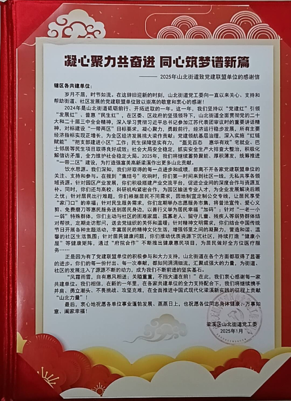 凝心聚力共奋进,同心筑梦谱新篇 ——信息管理学院党总支收获山北街道致党建联盟单位的感谢信