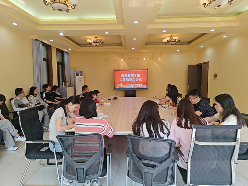 5月21日,信息管理学院召开全体教职工会议,全体教职工齐聚一堂,共同总结教学成果、分享经验、部署近期工作,会议由副院长陈妍主持。