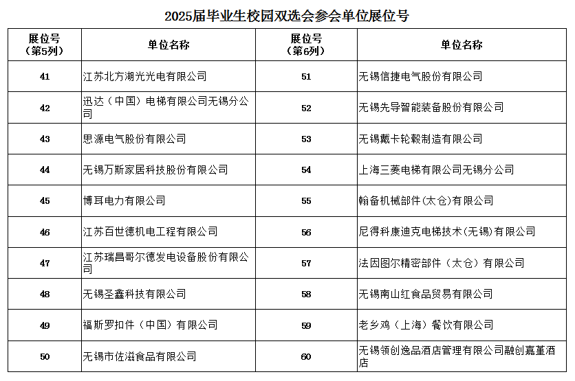学校2025届毕业生校园双选会参会单位招聘信息公布